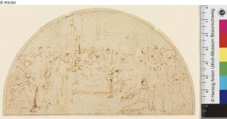 Fundmeldung Lunette mit Aufbahrung eines Heiligen Hersteller/Künstler:in Zuccaro, Taddeo (?) Objektart Zeichnung Material / TechnikFarbe braun ; Papier / gezeichnet (Feder)Lost Art-ID584943