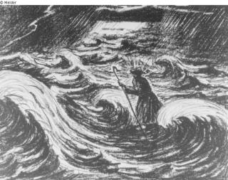 Fundmeldung Der Heilige Franziskus schreitet über die Wogen Hersteller/Künstler:in Scherer, Fritz Objektart Druckgrafik Material / Technikgedruckt (Lithographie)Lost Art-ID614794