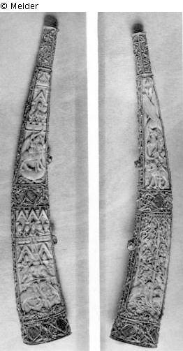 Elfenbein ; Metall (Silber) / geschnitzt ; vergoldet