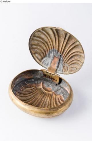 Fundmeldung Geldbüchse in Muschelform Hersteller/Künstler:in Unbekannt Objektart Behältnis Material / TechnikMetall (Messingblech) / getriebenLost Art-ID578012