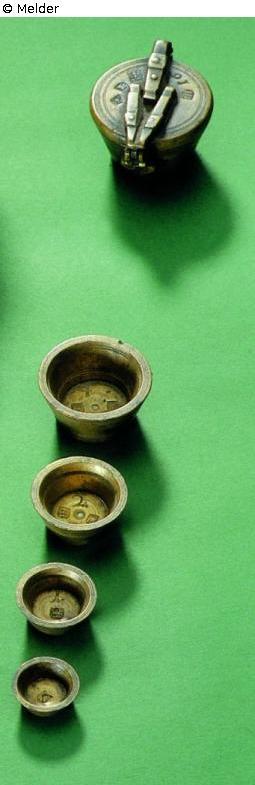 Fundmeldung Kleiner Tübinger Gewichtssatz Hersteller/Künstler:in Unbekannt Objektart Kunsthandwerk / -gewerbe Material / TechnikMetall (Messing) / gegossenLost Art-ID578020
