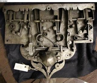 Fundmeldung Truhenschloss Hersteller/Künstler:in Unbekannt Objektart Kunsthandwerk / -gewerbe Material / TechnikMetall (Eisen) / geschmiedet ; graviertLost Art-ID578021