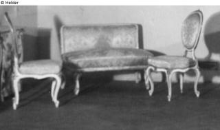 Suchmeldung Kleines Sofa und fünf Stühle Hersteller/Künstler:in Unbekannt Objektart Möbel Material / TechnikHolz ; Textil (Seide) [?] ; LackLost Art-ID566783