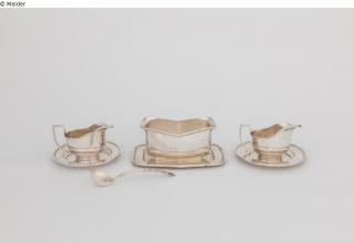 restituiert Fundmeldung Saucière mit Untersatz und Schöpfer Hersteller/Künstler:in Unbekannt Objektart Gefäß Material / TechnikMetall (Silber)Lost Art-ID453615