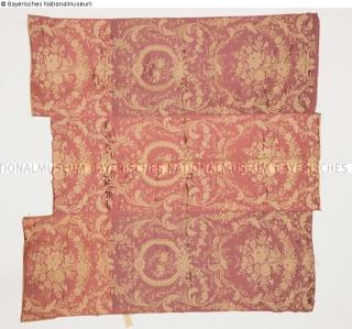 Fundmeldung Seidenlampas mit bizarrem Muster auf Atlasgrund Hersteller/Künstler:in Unbekannt Objektart Gebrauchs- / Raumtextilie Material / TechnikTextil (Seide) ; Metall (Silberfaden) ; Textil (Lampas) /...Lost Art-ID580364