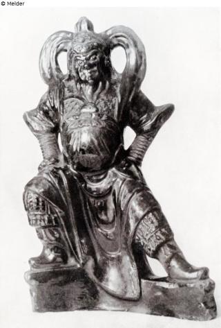 Suchmeldung Fayence-Dachreiter: Stehender Kriegsgott beide Hände aufgestemmt (beschädigt) Hersteller/Künstler:in Unbekannt Objektart Kunsthandwerk / -gewerbe Material / TechnikKeramik (Ton) ; Glasur (Fayence) grün, gelb, braunLost Art-ID582706