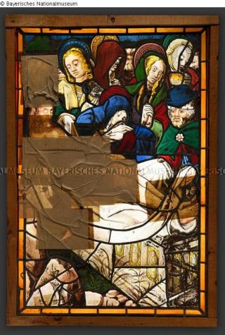 Fundmeldung Glasgemälde: Grablegung Christi Objektart Kunsthandwerk / -gewerbe Material / TechnikGlas ; Schwarzlot silbergelb / SchwarzlotmalereiLost Art-ID582570