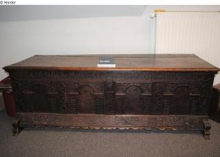 Fundmeldung Truhe Halbkastentruhe Hersteller/Künstler:in Unbekannt Objektart Möbel Material / TechnikHolz (Eiche) ; Metall / geschnitztLost Art-ID585533