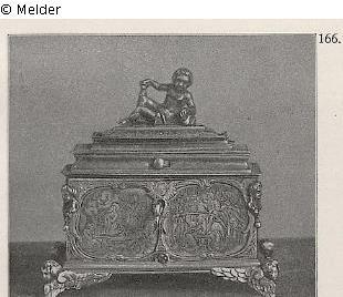 Suchmeldung Silbernes Kästchen mitallseitiger Gravierung Hersteller/Künstler:in de Bry, Johann Theodor Objektart Behältnis Material / TechnikMetall (Silber) / teilvergoldetLost Art-ID591945