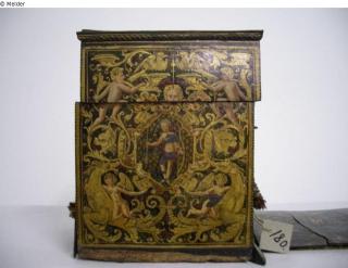 Fundmeldung Kästchen mit Malerei in Gold und Farbe Hersteller/Künstler:in Unbekannt Objektart Behältnis Material / TechnikHolz ; Metall (Gold) ; Leder ; Textil / bemaltLost Art-ID616615