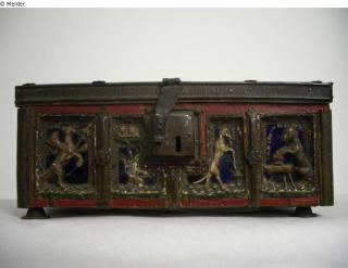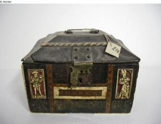 Fundmeldung Minnekästchen mit figürlichen Beineinlagen Hersteller/Künstler:in Unbekannt Objektart Behältnis Material / TechnikHolz ; Textil (Leinen) ; Metall (Messing) ; Bein /...Lost Art-ID616616
