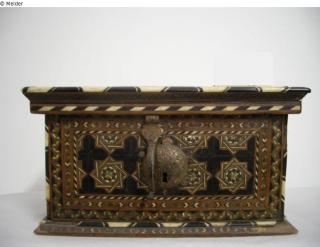 Fundmeldung Kästchen mit Intarsien aus Holz und Bein Hersteller/Künstler:in Unbekannt Objektart Behältnis Material / TechnikHolz ; Metall (Eisen) ; Metall (Gold) ; Bein / geschnitzt...Lost Art-ID616617