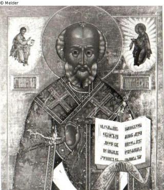 Fundmeldung St. Nikolaus Wundertäter Hersteller/Künstler:in Unbekannt (Ikonenmaler, vermutlich Wolga-Gebiet (Bulgarisch?)) Objektart Gemälde Material / TechnikTempera ; Goldgrund ; Holz / gemaltLost Art-ID528284