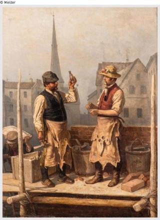 Suchmeldung Maurer auf dem Gerüst Baustelle des Roten Rathauses Hersteller/Künstler:in Hosemann, Theodor Objektart Malerei Material / TechnikLeinwand ; Öl / gemaltLost Art-ID593345
