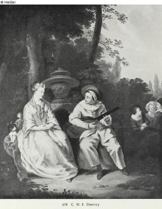 Suchmeldung Komödienszene im Park Hersteller/Künstler:in Dietrich, Christian Wilhelm Ernst Objektart Malerei Material / TechnikÖl ; Leinwand / gemaltLost Art-ID568386