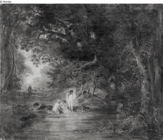Fundmeldung Waldlandschaft mit badenden Kindern Landschaft mit Badender Hersteller/Künstler:in Ebert, Carl Objektart Gemälde Material / TechnikÖl ; Holz (Mahagoni) / gemaltLost Art-ID605808