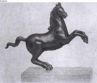 Suchmeldung Springendes Pferd Hersteller/Künstler:in Unbekannt (Meisterarbeit, Kreis des Leonardo da Vinci) Objektart Plastik / Skulptur Material / TechnikMetall (Bronze)Lost Art-ID474937