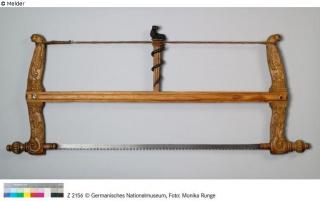 restituiert Fundmeldung Gestellsäge Hersteller/Künstler:in Unbekannt (Süddeutsch ?) Objektart Werkzeug Material / TechnikMetall (Eisen) ; Holz (Nussbaum) ; Holz (Lärche) ; Holz...Lost Art-ID577844