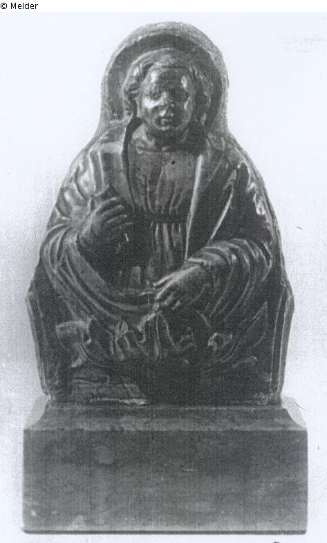 gehörte offensichtl. In einen architekt. Zusammenhang. In der Hüftzone abgefangen durch Laubwerkornament, roter (Untersberger ?) Marmor, Relief, seitwärts u. rückseitig unbearb., späterer Marmorsockel