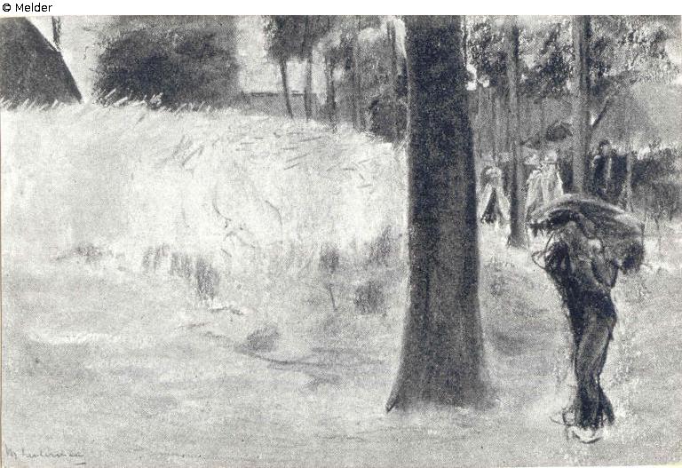 signiert u. l.: M Liebermann (in Schwarz); unter Glas gerahmt, Goldrahmen