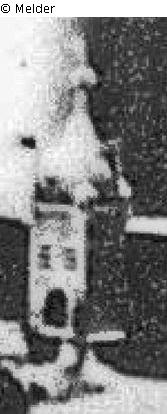 Die Besamimdose ist in der häufig verwendeten Form eines Turms gestaltet und besteht den Angaben auf der Rückseite des Fotos zufolge aus Silber.