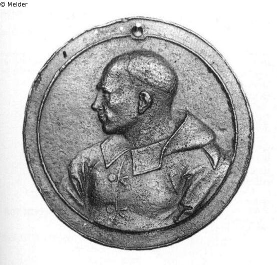 Einseitige Medaille, oben eine Durchbohrung. Brustbild nach links eines bartlosen Mannes mit kurzem Haar, die Kapuze mit Eselsohr galt als Narrentracht. Ringsum zwischen zwei Kreislinien ein freigelassenes Schriftfeld. Ein Holzmodell zu dieser Medaille befindet sich in Braunschweig.