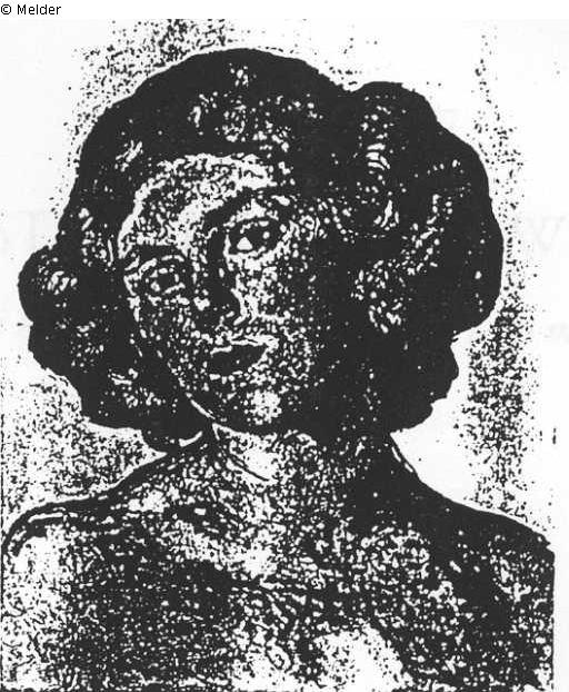 Brustbild einer jungen Frau mit lockigem Haar, den Kopf leicht nach links geneigt. rechts unten: 1911. F. Hodler.
