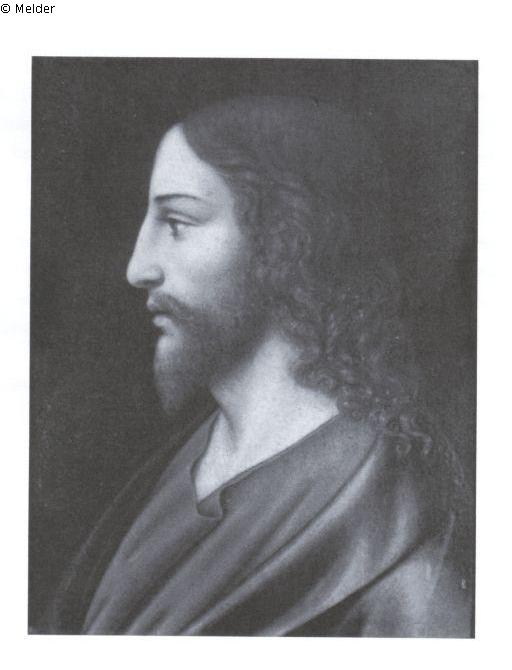 Im 19. Jahrhundert übermalt; jetzt: deutscher Maler des 19. Jahrhunderts; Christuskopf, linkes Profil, Brustbild mit rotbraunem Bart und Haar in rotem Gewand und blauem Mantel vor schwarzem Hintergrund; auf der Rückseite des Bildes: Graf v. Ingenheim, Lfd. Nr. 4, S. Akten 54 Nr. 157; Graf von Ingenheim´sche Bildersammlung, Erbinventar - Gemäldeverzeichnis: Nr. 62, Reisewitz, 1883.