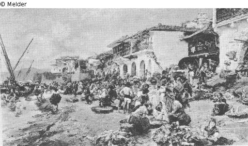 Das Gestade von Vigo nach der Ankunft der Fischerboote
