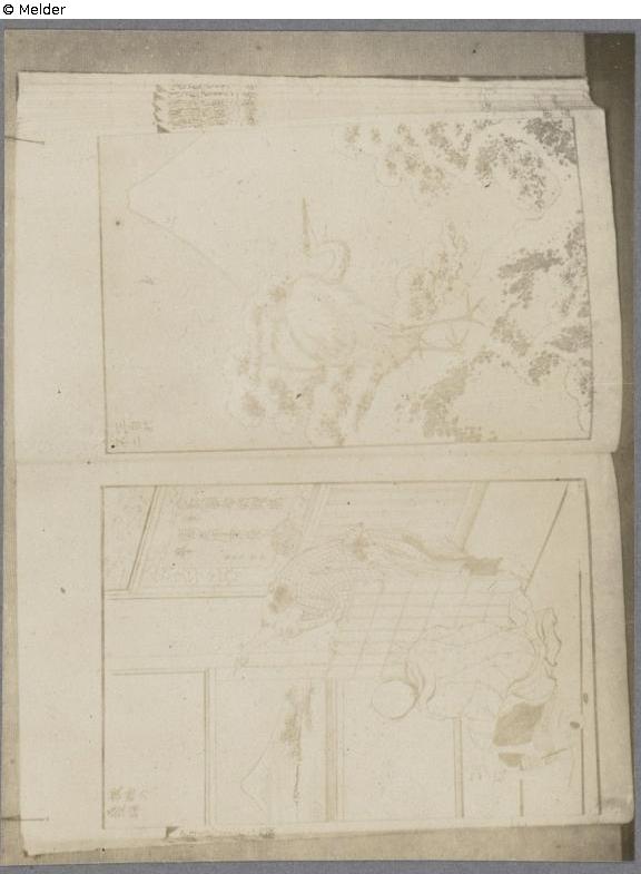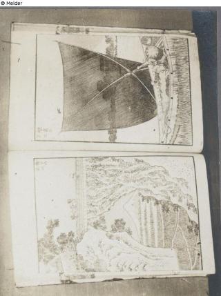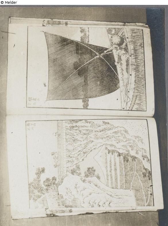 1. Band: Göttin des Berges Konohana Sakuja Hime und verschiedene Stimmungsbilder. 2. Band: Drache am Fuji; Naturbilder; müder Leser. 3. Band: Kampf de Helden Kawazon; Riesenkiefern; koreanische Gesandtschaft mit Tribut; Landschaftsbilder.