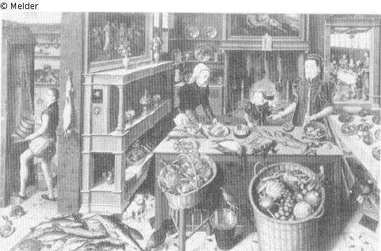Tafelmalerei: Bild: Vorbereitungen für das Hochzeitsmahl in Kana; Mahlzeit; Essensvorbereitungen