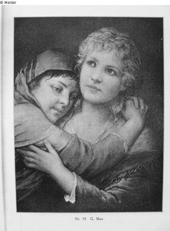Halbfiguren eines blonden und eines dunkelhaarigen Mädchens mit Kopftuch. Signiert.
