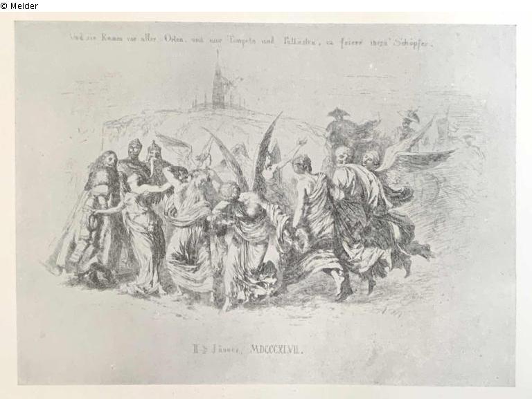 Festkarte zum siebzigsten Geburtstage des Bildhauers Rauch