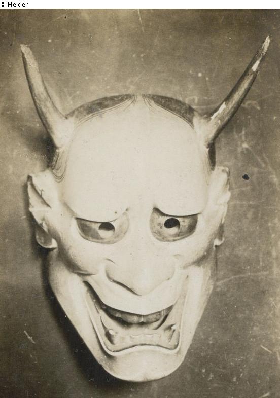 Weibliche Dämon mit Hörnern. Sie wird für unterschiedliche Rollen im No-Theater verwendet.