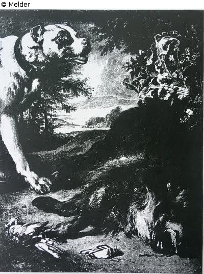 Das Gemälde stellt einen Hund mit Halsband, ein gefallener Keiler und zwei tote Vögel dar. Im Hintergrund eine Landschaft. Rechts botanische Elemente. Ein ähnliches Gemälde befindet sich im Museé des beaux-arts in Reims (siehe Ausrichtung des kleinen Vogels).