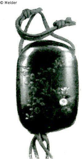 Sammlung Eduard Fuchs, erworben zwischen 1912–1925 und in dessen Besitz bis 1933; 25.10.1933 Beschlagnahmung durch die Gestapo; zwangsweiser Verkauf (Zahlung Reichsfluchtsteuer) 1937 durch seine Tochter Gertraud Fuchs: Versteigerung Auktionshaus Rudolph Lepke Berlin, Katalog 2115 - am 15.10 und am 16.10.1937 wurde diese Kleinplastik unter Nr. 314 versteigert: „INRO: Goldlack, vierteilig., Blumen und Gräser in Goldlack, Email- und Elfenbeinauflagen. Holznetsuke. 7 cm. Japan. Abbildung Tafel 11“.