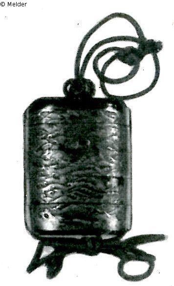 Sammlung Eduard Fuchs, erworben zwischen 1912–1925 und in dessen Besitz bis 1933; 25.10.1933 Beschlagnahmung durch die Gestapo; zwangsweiser Verkauf (Zahlung Reichsfluchtsteuer) 1937 durch seine Tochter Gertraud Fuchs: Versteigerung Auktionshaus Rudolph Lepke Berlin, Katalog 2115 - am 15.10 und am 16.10.1937 wurde diese Kleinplastik unter Nr. 302 versteigert: „INRO: Braunlack, fünfteilig, Wellen in metallischem Silber. 6,5 cm. Japan (Beschädigt). Abbildung Tafel 11“.