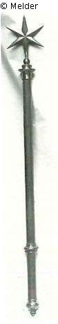 »Regimentsstäbe«, jeweils mit einem sechsstrahligen Stern an der Spitze. Die runden Stäbe sind oben und zur Begrenzung der Griffzone mit verschiedenen Ringen und am unteren Ende mit einem nahezu kugelförmigen Knopf beschlagen.