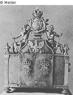 Suchmeldung | Einzelobjekt Kassette König Friedrichs I., "Pieree Fromery" Lost Art-ID404320 Vorherige Weiter TitelKassette König Friedrichs I., "Pieree Fromery" Datierung1701 (um)ObjektartKunsthandwerk / -gewerbeObjektgruppeKunsthandwerk / -gewerbeMaterial / TechnikMetall (Stahl) ; Metall (Bronze) / vergoldetInventarnummer2763Beschreibung mit Monogramm F.R. Weiterlesen Weniger anzeigen Sammlung Preußische KroninsignienProvenienz Preußische Kroninsignien, Hohenzollern-Museum, Schloss Monbijou, Berlin; Verlust 1945. Weiterlesen Weniger anzeigen Veröffentlicht seit2008 Ansprechpartner:in Michaela BlankartPositionGeneralverwaltungTel+49 (0) 30 803 1138E-Mailberlin@preussen.de Ansprechpartner:in Stefan SchimmelPositionKunstsammlungenTel+49 (0) 30 803 1138E-Mailschimmel@preussen.de