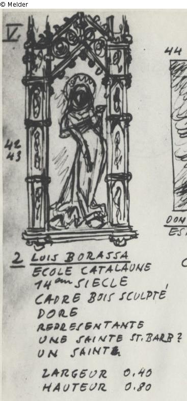 Suchmeldung | Einzelobjekt Katalanische Schule (St. Barbara) Lost Art-ID598828 Vorherige Weiter Hersteller/Künstler:in Borassà, Luis TitelKatalanische Schule (St. Barbara)ObjektartGemäldeObjektgruppeMalereiMaterial / TechnikgemaltBeschreibung derzeit keine weiteren Angaben verfügbar Weiterlesen Weniger anzeigen Provenienz Sammlung Margret und Ludwig Kainer, Berlin (Haus Wannsee, Kleine Seestraße Nr. 6); 1935 Beschlagnahme; Verbleib unbekannt Weiterlesen Weniger anzeigen Veröffentlicht seit16.03.2022 Ansprechpartner:in Mondex CorporationE-Mailinfo@mondexcorp.com