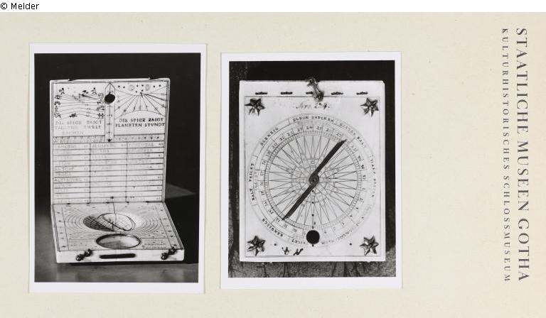 Kompass in Form eines viereckigen Diptychons. Inschrift: SOLI DEO GLORIA 1601 PAULUS REINMAN NORIMBERGAE FACIEBAT.