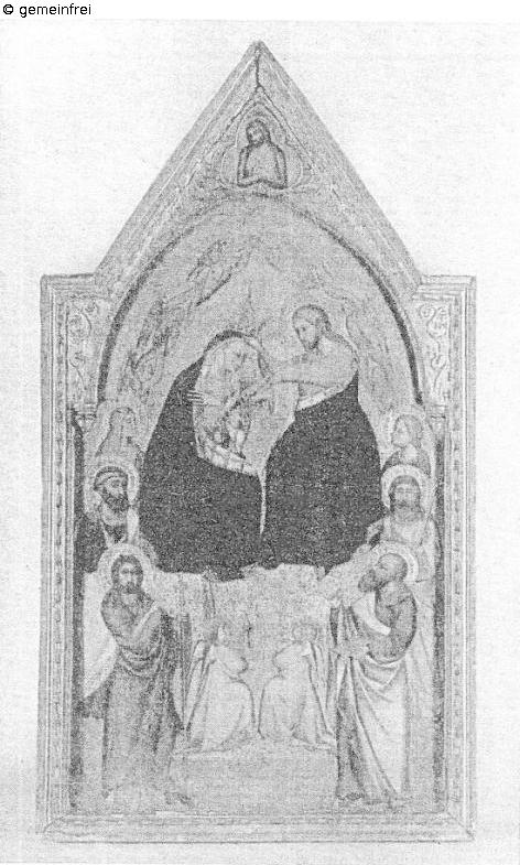 Zu vergleichen mit mit der um 1370/1371 entstandenen Krönung Mariae in der National Gallery zu London (Van Marle III, p. 495) und mit der Marienkrönung, die der Meister nach 1373 für die "Zecca Vecchia" schuf.