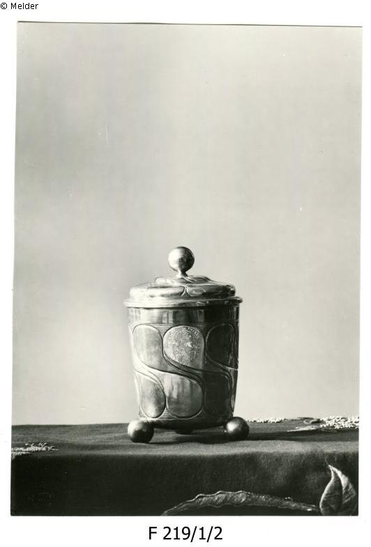 Meistermarke OM, wohl Dresdener Arbeit, eingraviertes Wappen des Johann Lehmann, darum die Inschrift: a) "Johannes Lehmann Praetor Budissinensis.1684." Ein weiteres Spruchband trägt die Inschrift: b) "Pie modeste ׀ Candide sobrie."