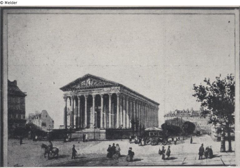 L'Eglise de la Madeleine et la place animée de voitures et figurines / Die Magdalenenkirche und der mit Fahrzeugen und Figuren belebte Platz
