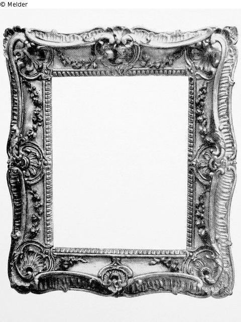 geschnitzt und vergoldet, mit Stuckauflagen. Stark kurviert, mit Muschelwerk und Blütengehängen. Maße sind Lichtmaß. Leistenbreite 7,8 cm.