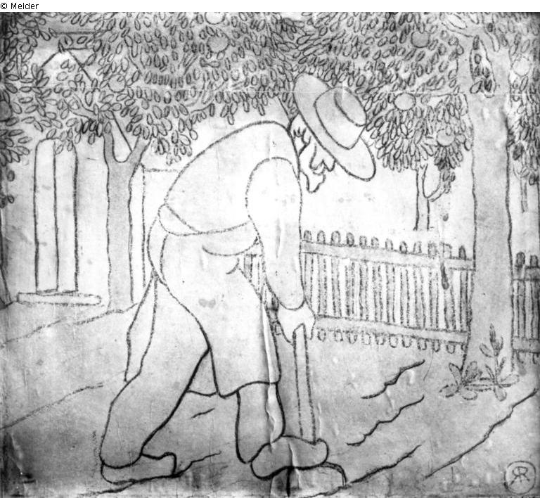 Farbige, pastellartige Zeichnung; Pappe für Wandteppich