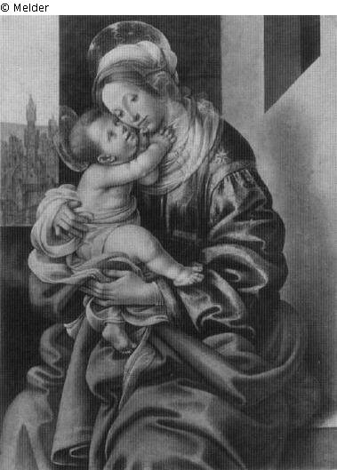 Tafelmalerei: Bild: Madonna: Maria sitzt oder thront (machmal halbfigurig) und hält das Christuskind in ihrem Schoß (oder vor ihre Brust); Thron; sitzen