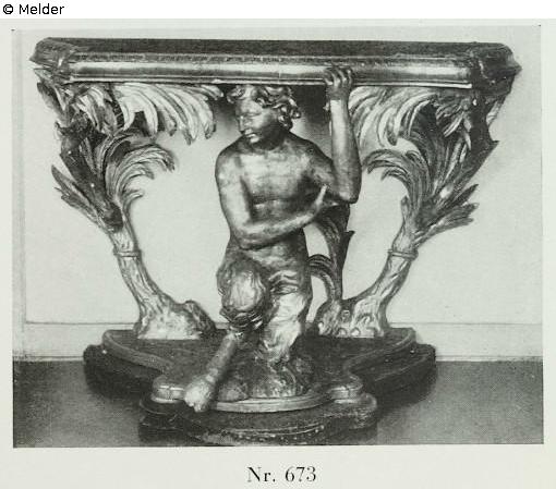 die Platten getragen von knienden Faunen, flankiert von Palmenbäumen, alte Vergoldung.