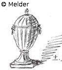 Ein Paar silberne Urnen, melonenförmig und kanneliert. Je zwei Ringhenkel an Widdermasken, Kiefernzapfen als Deckelgriff. Auf quadratischem Fuß. Spätes Louis XVI, Niederlande. Weinm: Marke undeutlich. Auf Holländisch auch "Kastanjevazen" genannt.
