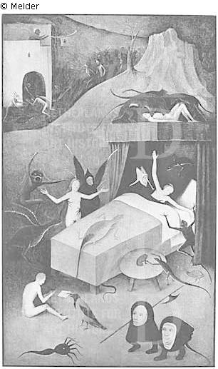 Quelle: Karl Arndt: Zur Ausstellung "Jheronimus Bosch" 's'Hertogenbosch 1967. In: Kunstchronik. 21(1968)1, S. 1-21 (als Nachfolger); NL - Rijksbureau voor Kunsthistorische Documentatie (RKD), documentation; Charles de Tolnay: Two Drawings after a Lost Triptych by Hieronymus Bosch. In: Record of the Art Museum, Princeton University. 20(1961)2, S. 43-48, Abb. 5 und 6; Charles de Tolnay: Hieronymus Bosch. Baden-Baden 1965. Band 1, Abb. gegenüber S. 90. Band 2, S. 344-345. Kat. Nr. 6 a (als Hieronymus Bosch); Gerd Unverfehrt: Hieronymus Bosch. Die Rezeption seiner Kunst im frühen 16. Jahrhundert. Berlin 1980. S. 219, 244-245, Nr. 13, Abb. 204; explore.rkd.nl/explore/images/56525; explore.rkd.nl/explore/images/56524